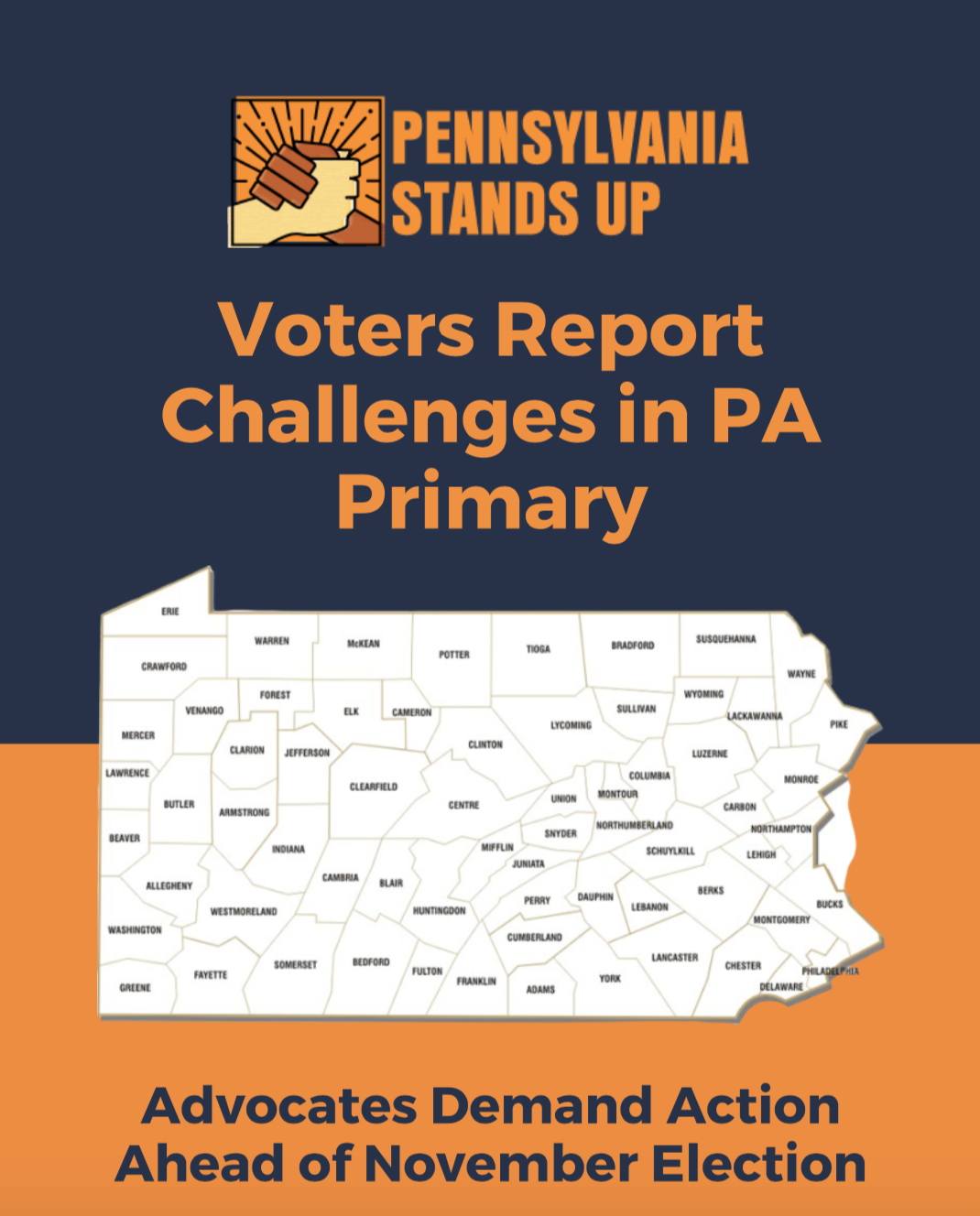 “Voting is a paramount right of a thriving democracy, and the Pennsylvania legislature has failed in its role to uphold that institution,” said Michaela Purdue Lovegood, Deputy Executive Director of PA Stands Up. “Legislators must take action now to provide adequate resources and training to election workers, and County Boards of Election must learn from the failures of this primary. Voters across Pennsylvania are counting on them all.”
